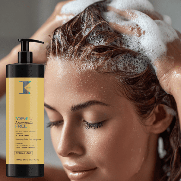 • Sampon profesional din gama Essentialis Free este conceput pentru o curățare delicată, potrivită chiar și pentru părul sensibil. Formula sa lejeră și hidratantă reîncarcă firul de păr cu vitalitate, protejându-l și lăsându-l suplu și strălucitor.