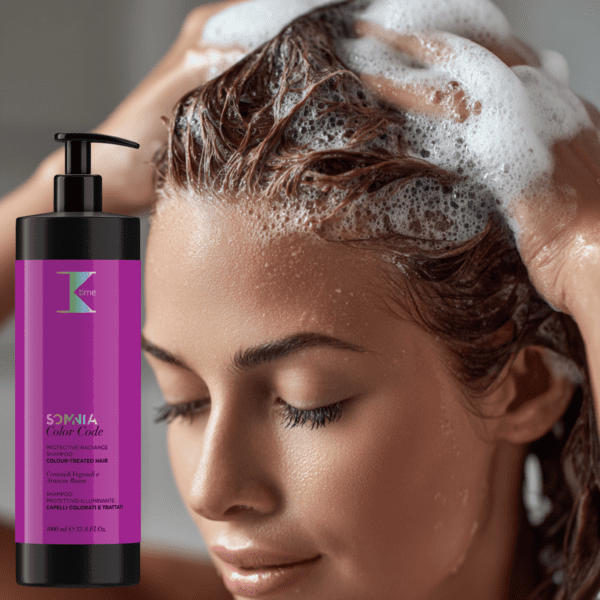 Sampon profesional din gama „Color Code” este creat special pentru părul vopsit sau chimic tratat. Formula cu ceramide vegetale și polifenoli din portocală roșie reechilibrează pH-ul fibrei capilare și fixează culoarea, lăsând părul moale, mătăsos și ușor de descurcat.