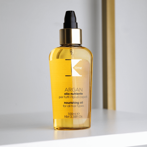 K-Time Argan Nourish Oil este un ulei tratament pentru păr, creat pentru a oferi strălucire intensă, hidratare profundă și un aspect vizibil mai neted. Este ideal pentru părul care are nevoie de revitalizare, suplețe și protecție împotriva efectului de încrețire, fără a fi încărcat.